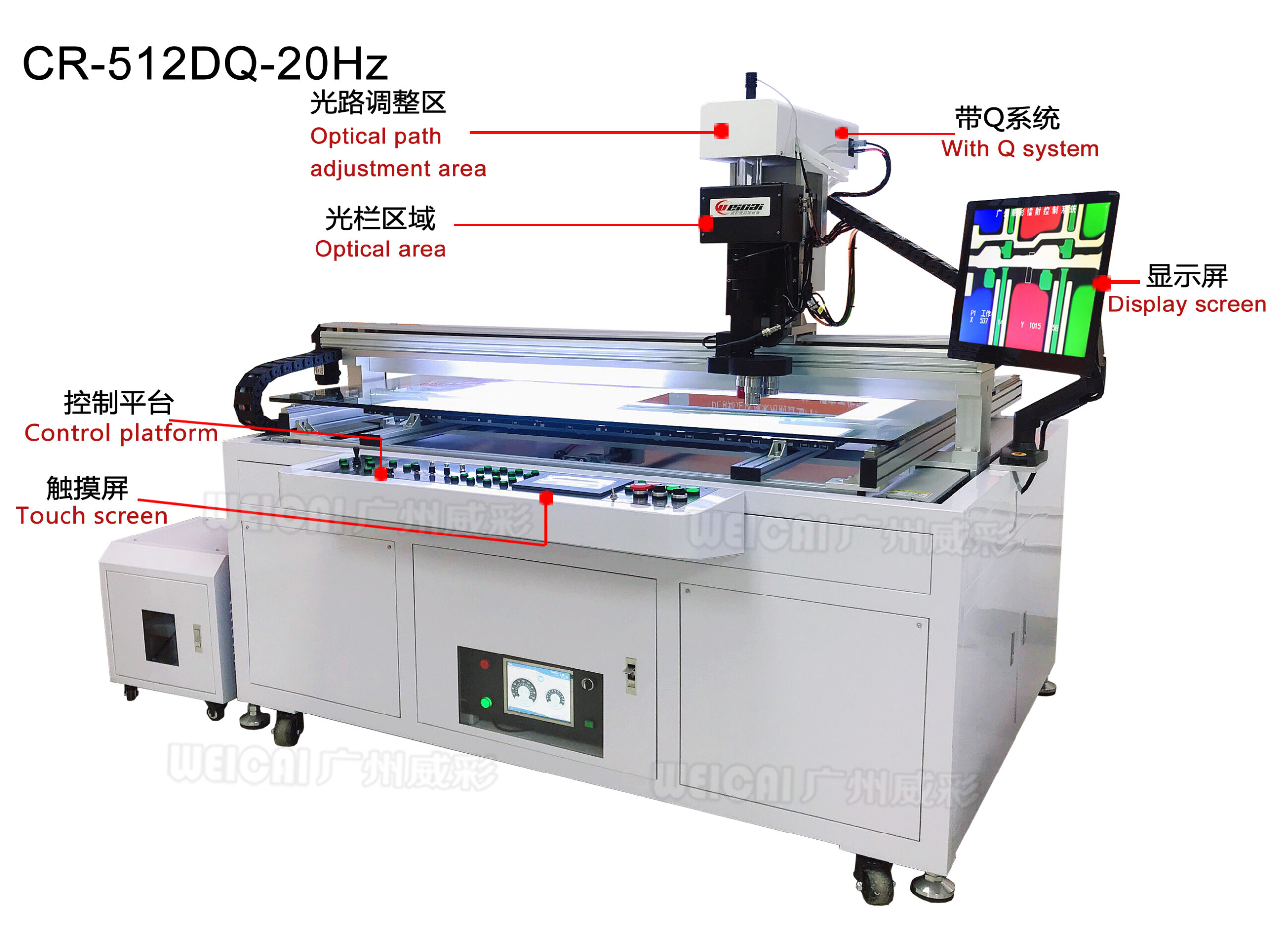 - Light source: red light (laser spot labeling) upper light source (cold white light irradiation) lower light source (58-inch backlight, highlighted LED light bar)